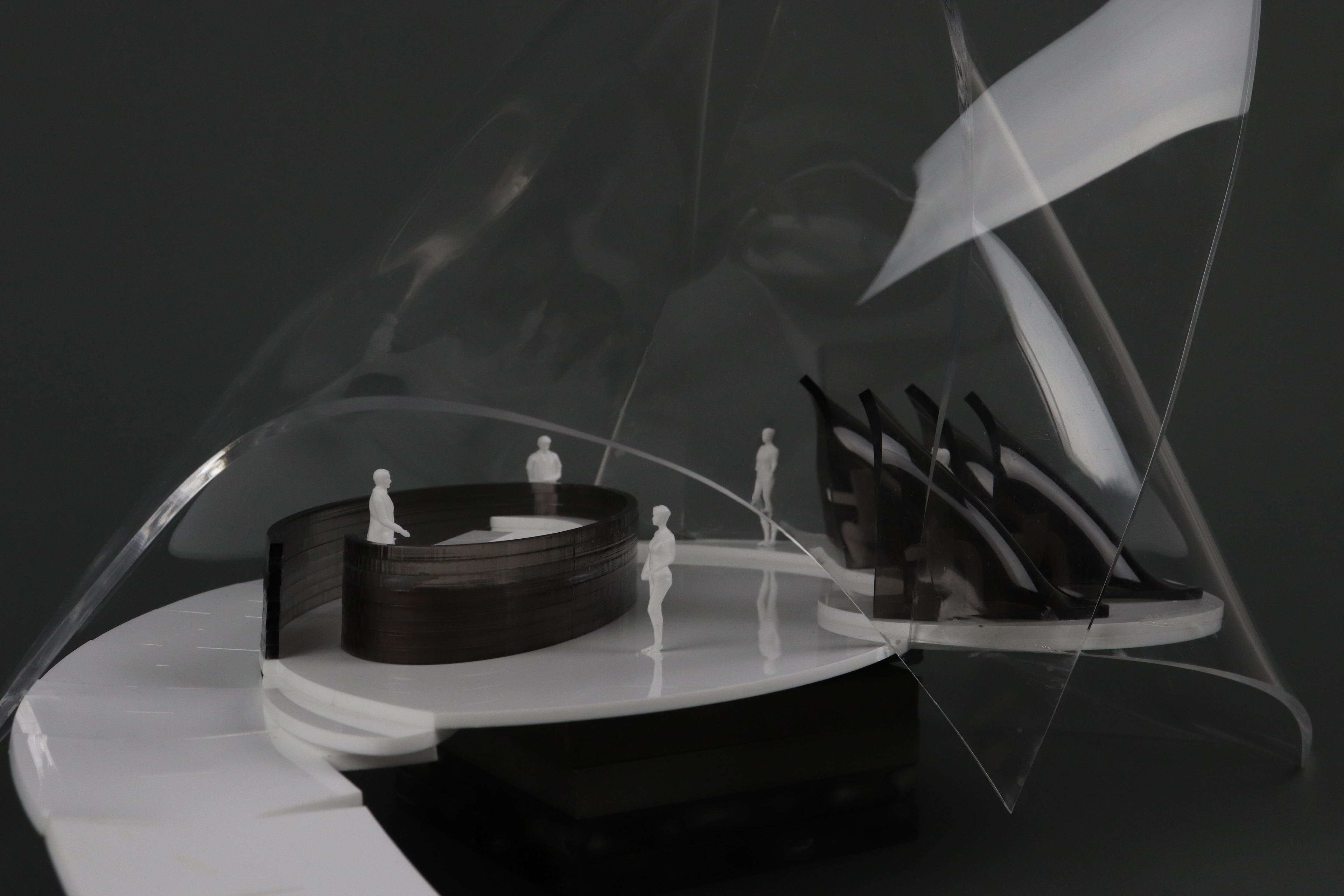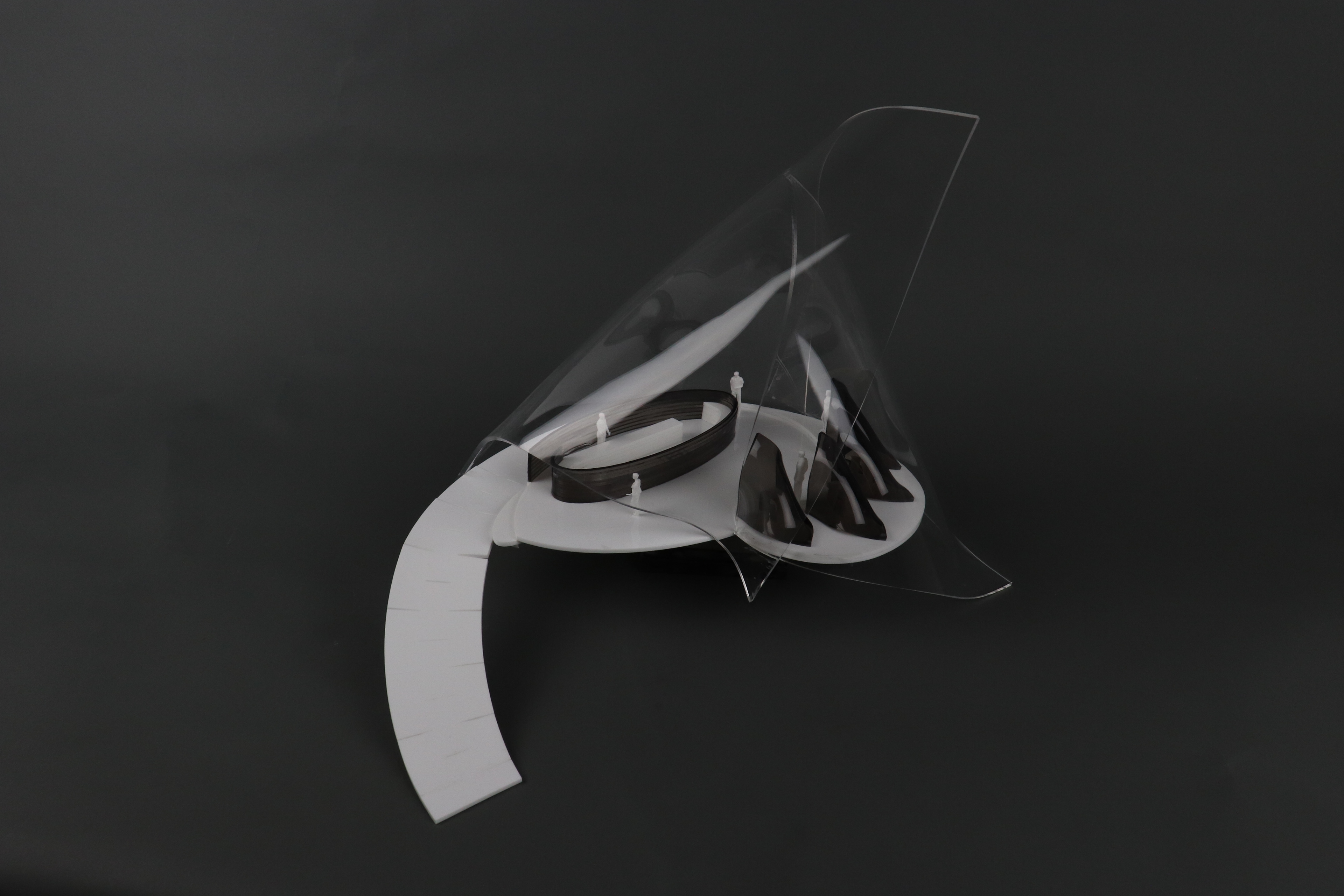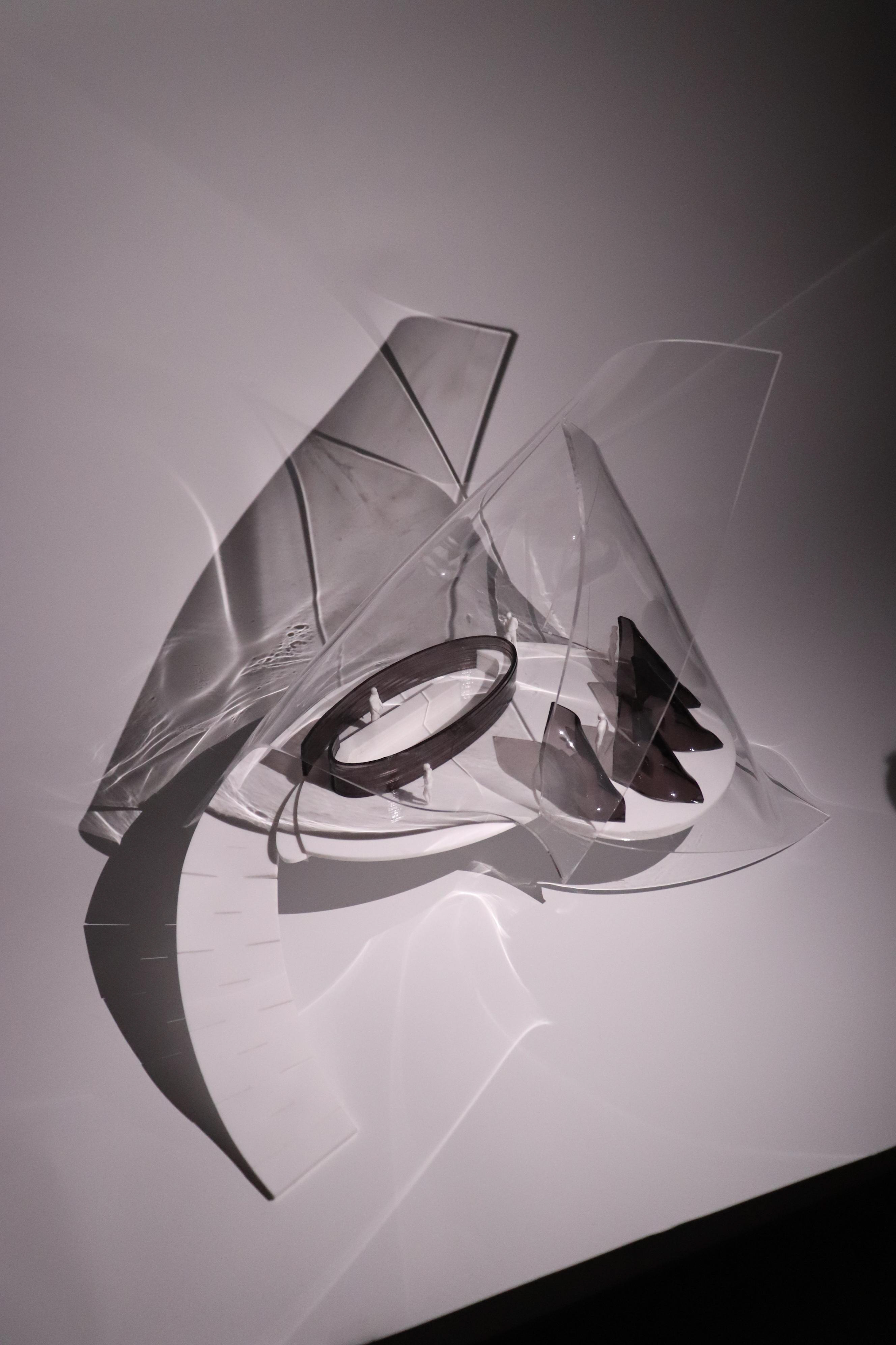 In this studio, abstraction was used to express design ideas based on a chosen client. I chose Massimo Bottura, an Italian restaurateur, whose “highlight the imperfections” philosophy led me to explore the idea destructivism. Through models, I explored shattering through different mediums, which led me to the distorted triangular shapes of corn chips. The final abstract model of clear acrylic communicates the abstracted idea of destructivism.